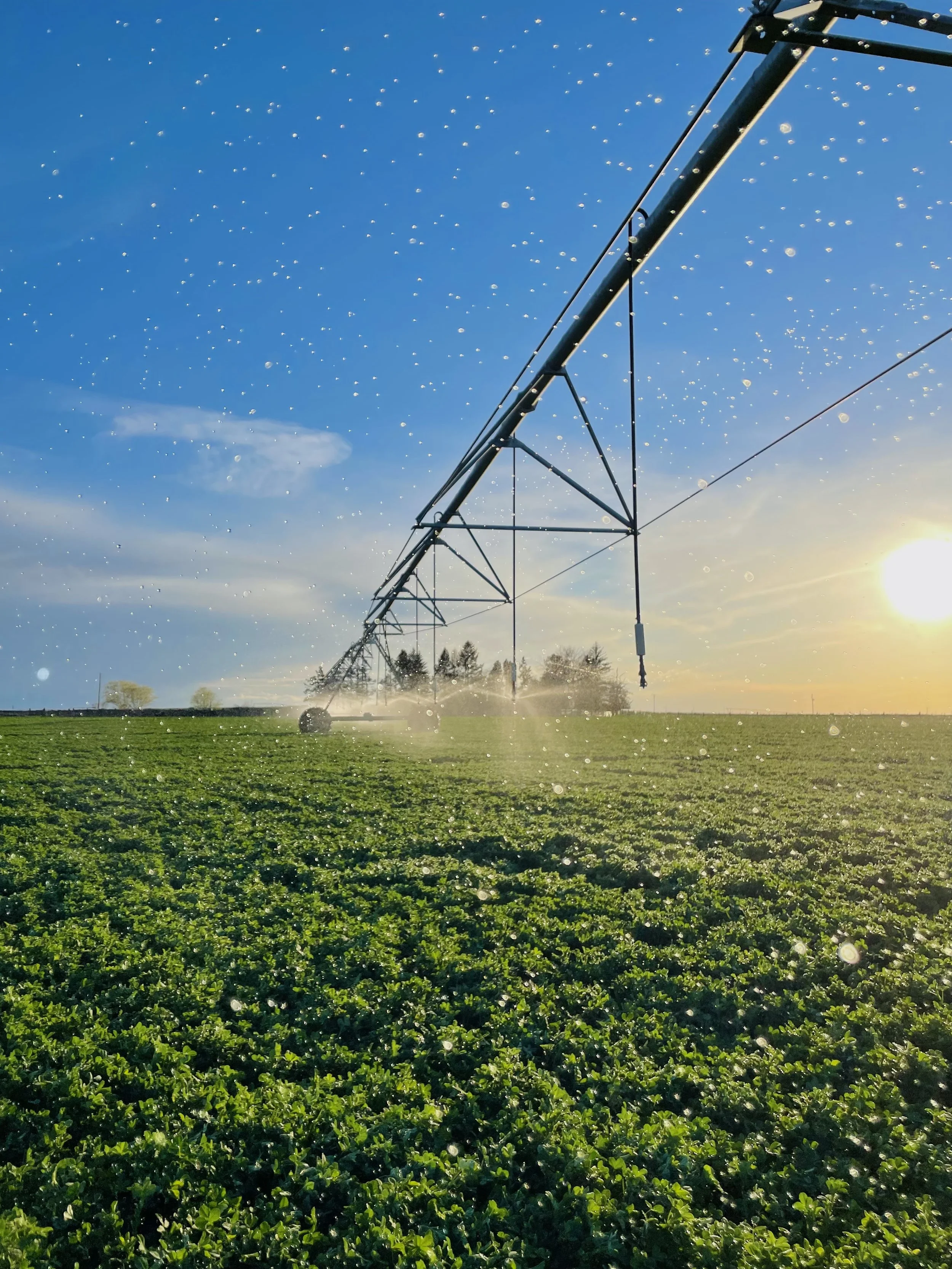 Growing our summer pastures and forage for our livestock goes hand in hand with our hay production. Rotating water between fields throughout the year is done by all types of irrigation: Flood, Handline, Wheeline, and Center Pivots. Using rotational grazing we are able to move cattle from pasture to pasture, giving each field a break before the cattle return to start the rotation over again. The use of fall planted cover crops like Triticale allows us to start this grazing rotation earlier in the spring and boost our forage production beyond what is avialable in the pastures by early spring. Pastures are a diverse mixtutre of grasses, clovers, and native species to our area.